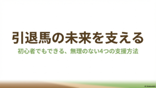 引退馬支援おすすめの方法や、初心者が知っておくべき現状を詳しく解説します。毎年多くの馬が引退する中で、実質負担2000円で可能なふるさと納税や、里親制度など自分に合う引退馬支援おすすめの選び方が分かります。大切な愛馬たちの余生を無理なく支え、共に歩む第一歩を始めましょう。