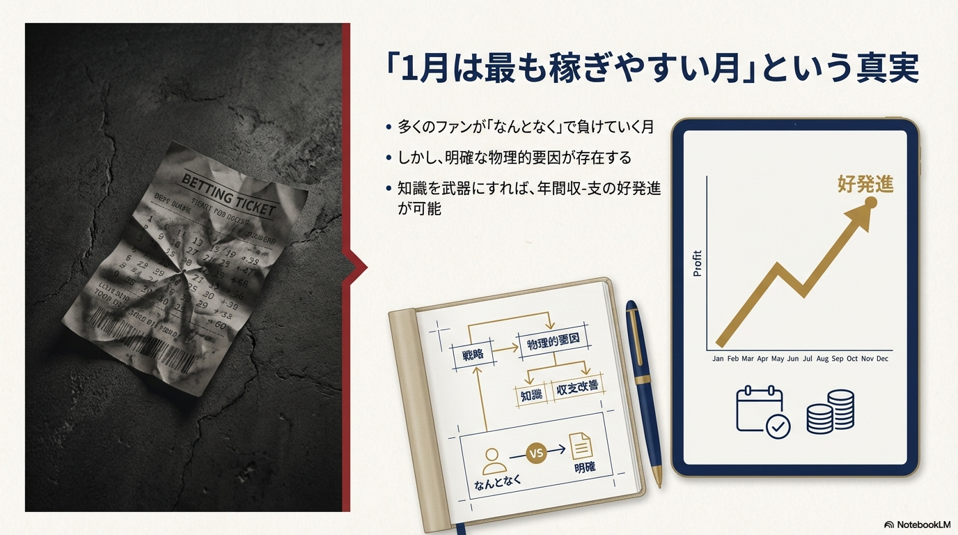 「一年の計は元旦にあり」と言いますが、競馬においても1月の成績はメンタル面で非常に大きな意味を持ちます。ここで「冬特有のロジック」を使ってしっかりと利益を確保できれば、その余裕資金で春のG1シーズンを有利に戦うことができます。