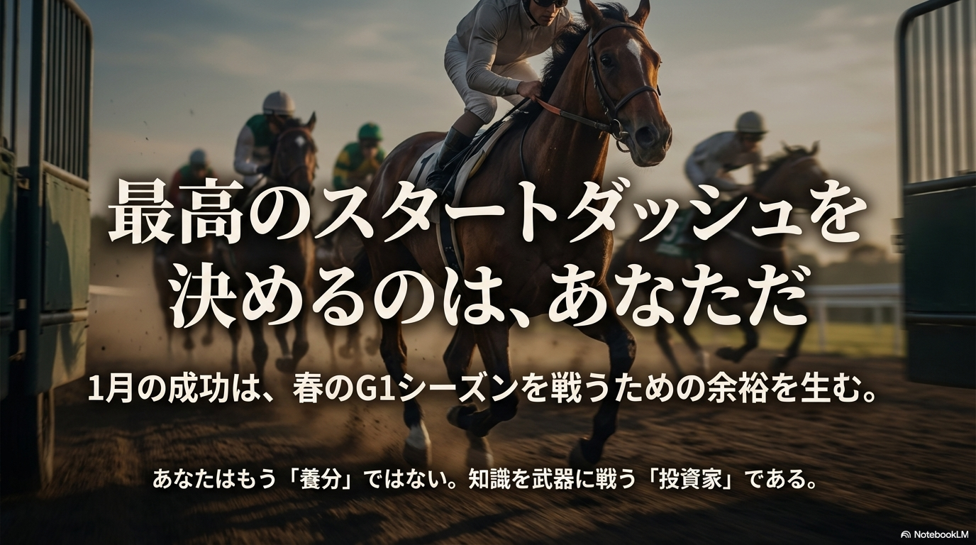 この記事を読んだあなたは、もう「なんとなく馬券を買う養分」ではありません。冬の馬場のメカニズムを理解し、種牡馬の適性を見抜き、オッズの歪みを検知できる「投資家」としての視点を持っています。ぜひ今週末の予想から、この「1月必勝法」を実践してみてください。寒空の下、熱い配当を手にして、最高のスタートダッシュを決めましょう!