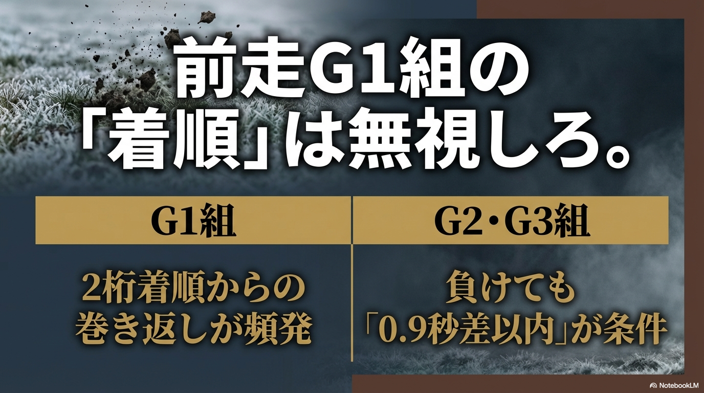 1. 前走G1組は「着順」を無視して買う勇気が必要