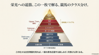 競馬を見始めたばかりのころ、「G1」や「G2」といった言葉を耳にして、その違いがよく分からなかった経験はありませんか。競馬のレースには、実はしっかりとしたクラス分けが存在します。GIのGとは何を意味...