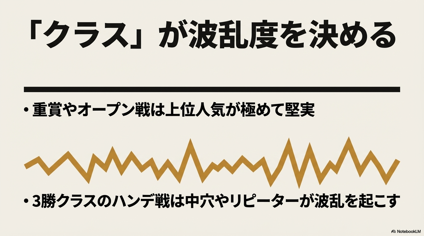 | クラス | 1番人気信頼度 | 波乱度 | 狙い目の傾向 |