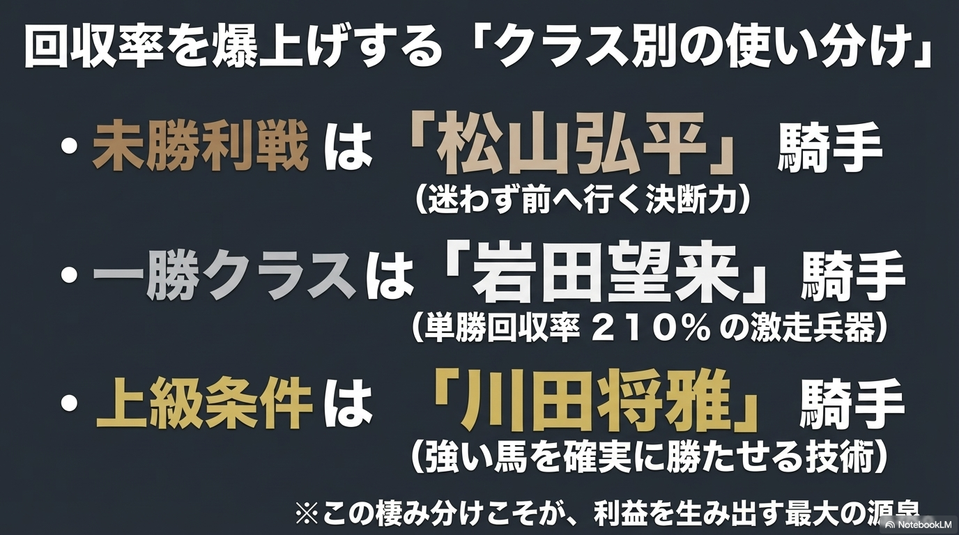 クラス 狙い目騎手 勝率 単勝回収率 攻略のヒント