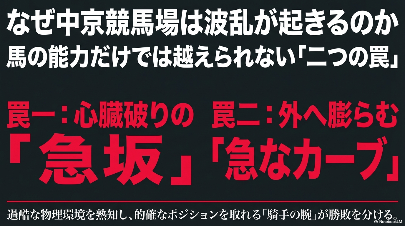 中京競馬場全体の高低差やスパイラルカーブの仕組みについては、別の記事でも詳しく解説しています。騎手の戦術だけでなく、物理的なコース特性を知ることで、より精度の高い予想ができるようになりますよ。