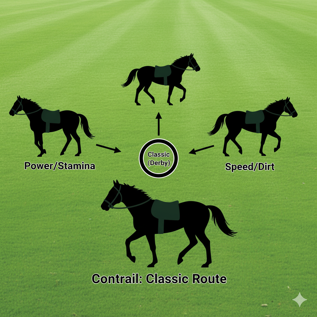 - コントレイル: 日本型王道(芝・中距離クラシック、特にダービー)
