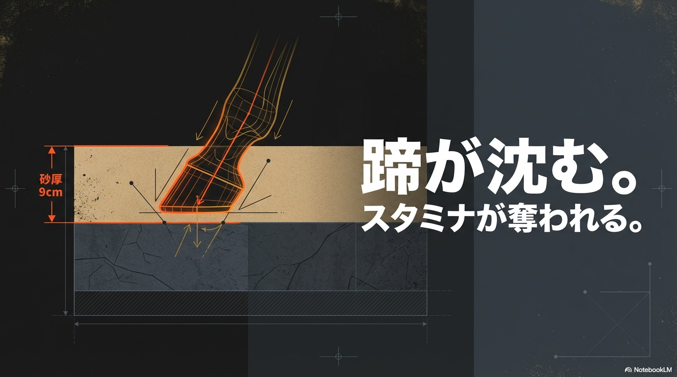 ダート競馬において大型馬が圧倒的に有利とされる最大の理由は、JRA(日本中央競馬会)の競馬場で徹底して管理されている「砂(クッション砂)」の深さにあります。日本のダートは約9cmもの厚さで砂が敷き詰められており、これは世界的に見てもかなり「深い」部類に入ります。