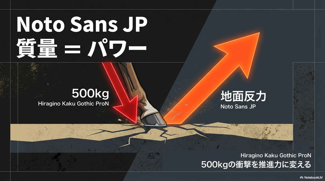 • 地面反力の活用: 500kg超級の質量が路盤を叩くことで、強力な反発力を得る