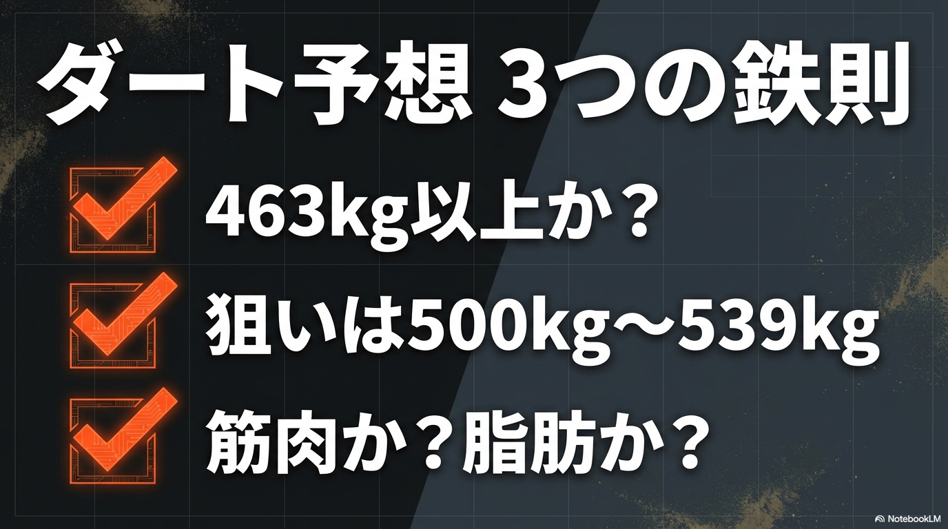 まずはこの「463kg」という数字を頭の片隅に置いておくだけでも、予想の景色が少し変わってくるかなと思います。