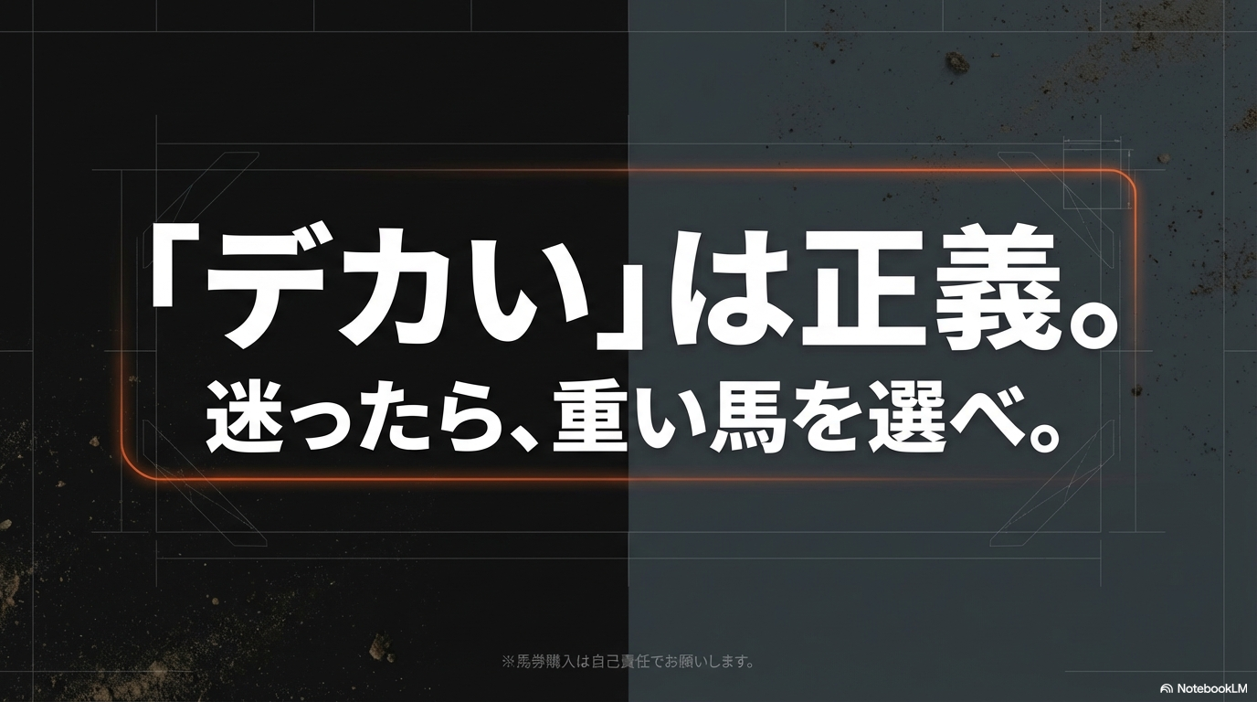 ここまでの内容を振り返って、私たちがダート予想において最も大切にすべき結論を整理しましょう。まず、ダート戦においては「平均463kg」という数値が、能力を発揮するための大きな境界線になります。JRAのダートコースに敷き詰められた厚さ9cmの砂は、私たちが想像する以上に過酷な「物理的障壁」です。体重500kgの馬が全力疾走する際、その脚にかかる衝撃や負荷は自重の数倍にも達すると言われており、その強大なエネルギーを受け止め、砂を力強く蹴り出すためには、どうしても一定以上の馬格、すなわち「質量」が必要不可欠なんです。