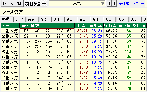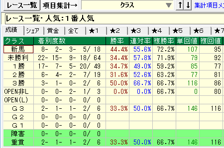 • 1番人気⇒新馬戦・未勝利戦の成績が優秀。
