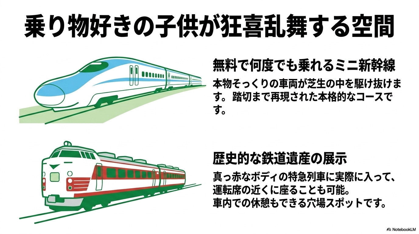 | 先着予約 | うまキッズルーム、ミニ新幹線 | 開門直後の「入場即ポチ」が絶対条件。お昼前の枠から埋まります。 |
