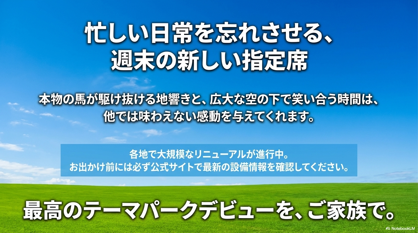 いかがでしたでしょうか。今の競馬場は、もはや「ギャンブルをするためだけの場所」という古いイメージを完全に脱却し、家族の絆を深め、一日中遊び尽くせる「次世代型の多目的レジャー空間」へと劇的な進化を遂げています。私自身、最初は「子連れで本当に大丈夫かな?」と半信半疑で足を踏み入れましたが、今ではお弁当を持って週末に通うのが楽しみの一つになっています。