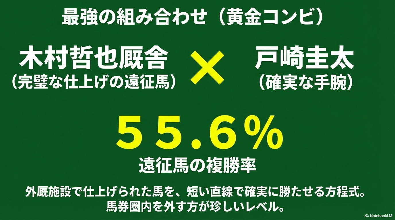 - 木村哲也厩舎 × 戸崎圭太:外厩(天栄)仕上げの有力馬が目印。