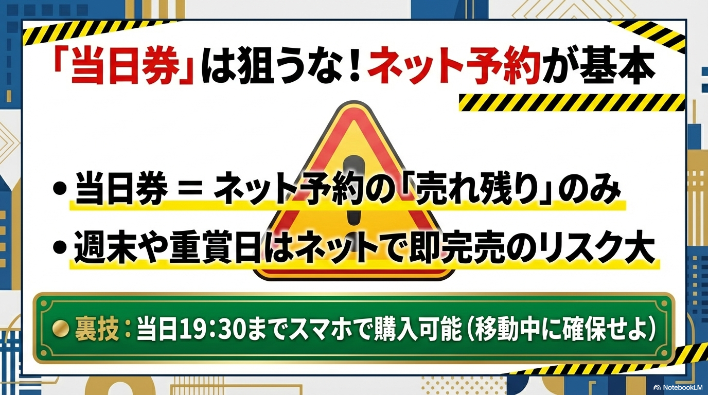 - 予約の鉄則:失敗しない「ネット予約(チケットペイ)」の手順と、当日券のリアルな事情