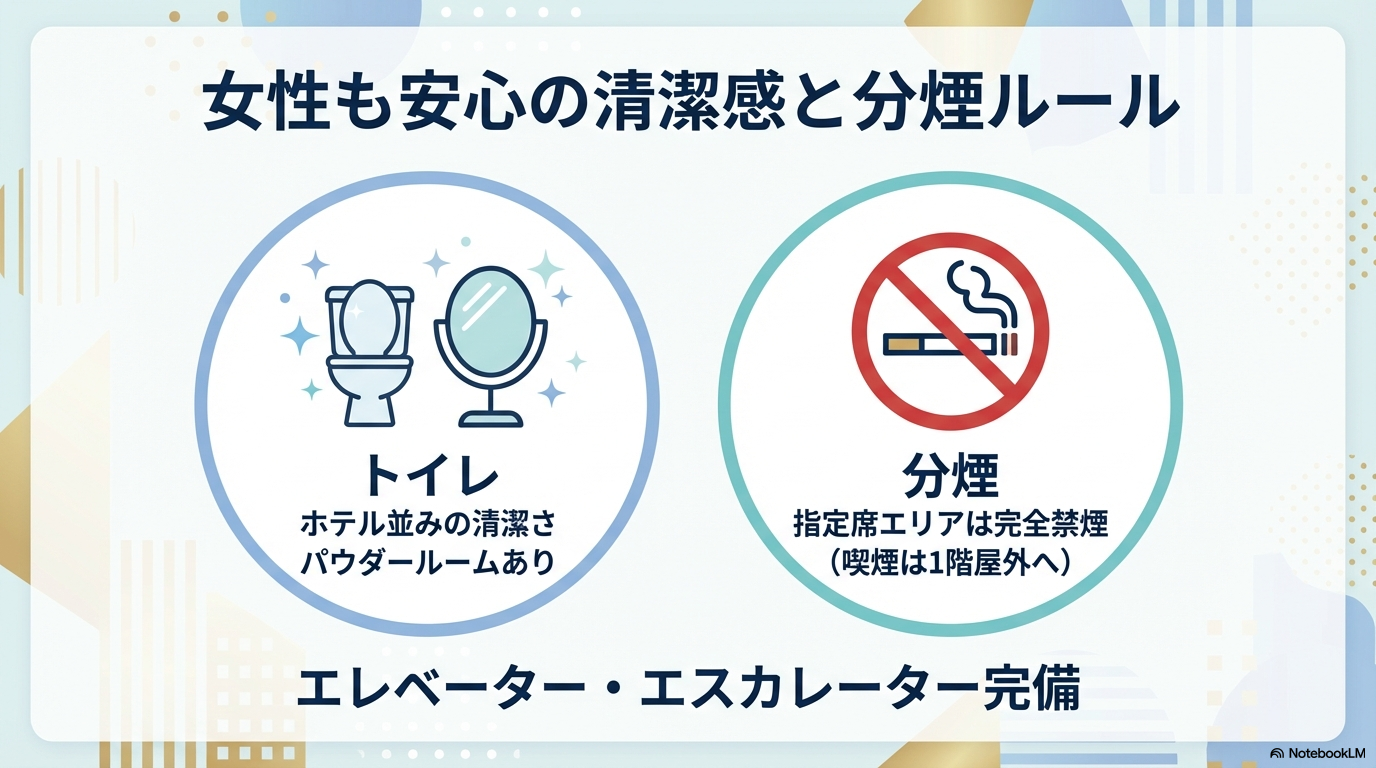 - 快適に過ごすためのWi-Fiや喫煙所の場所