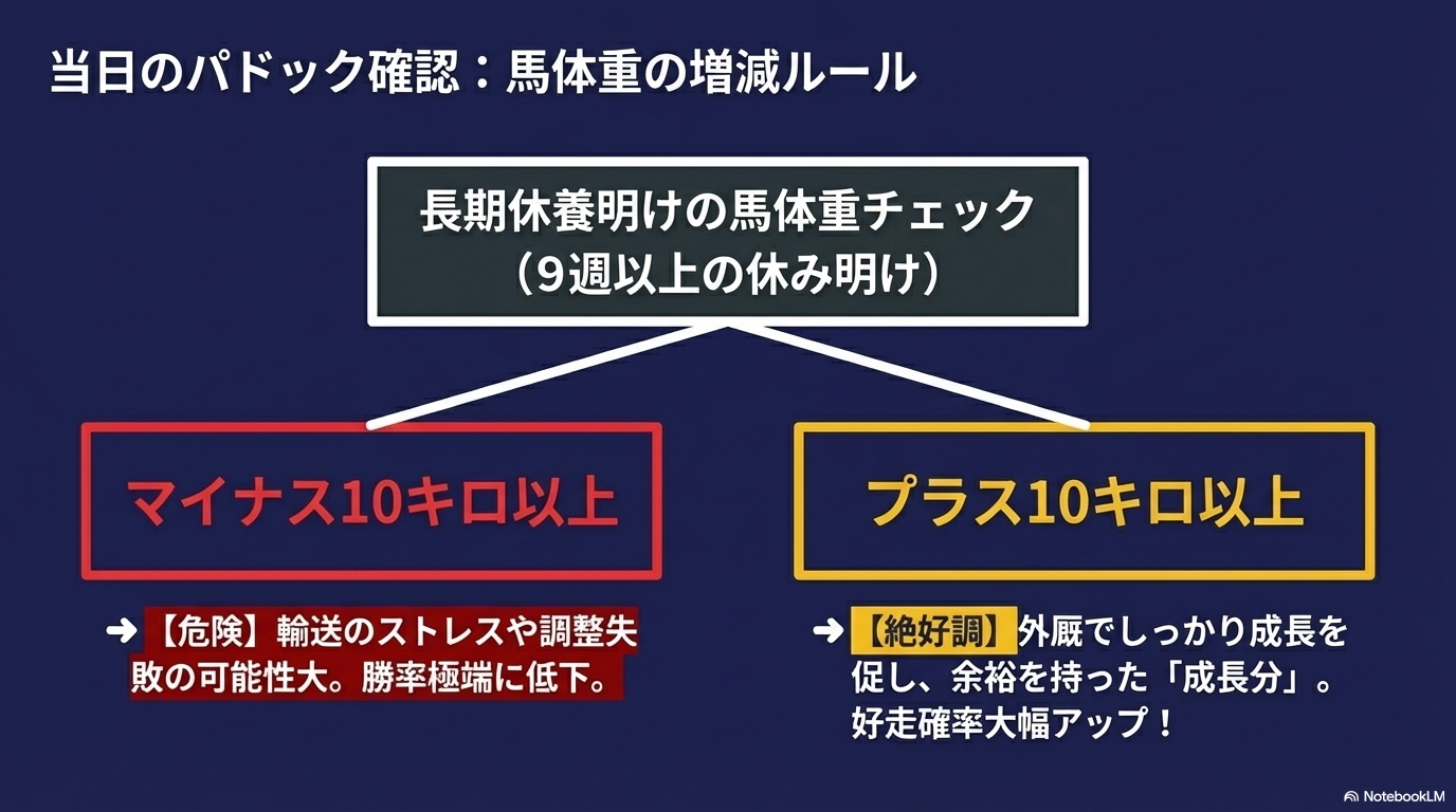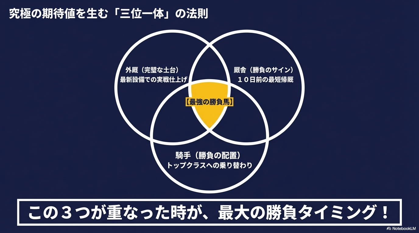 • 最短帰厩(10〜12日前): 外厩での調整が完璧。フレッシュな状態で一発を狙う「勝負」のサイン。