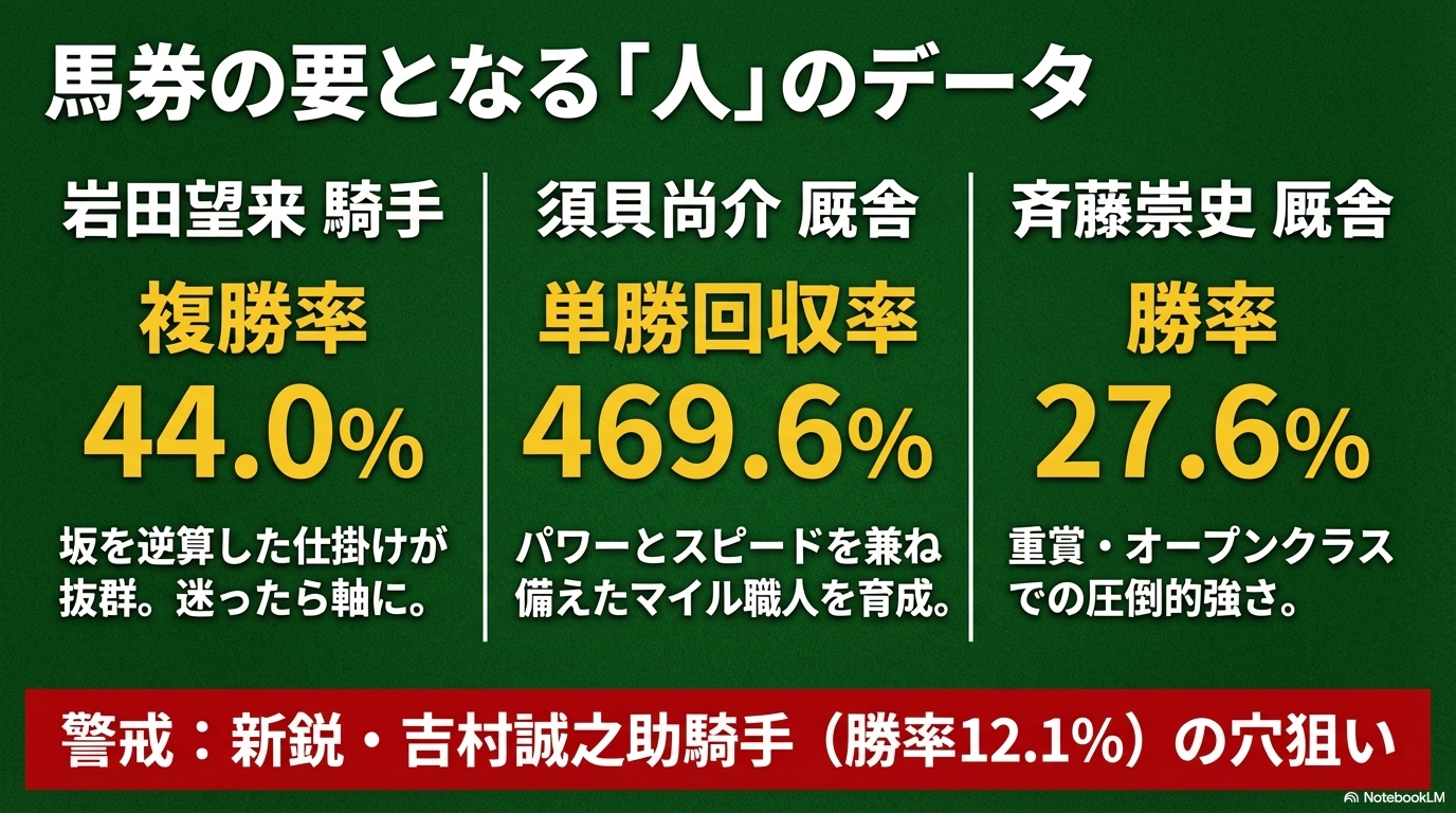 • 人間の要素:岩田望来騎手や福永祐一厩舎など、このコースでの「勝ち方」を知っている陣営を最優先に評価します。