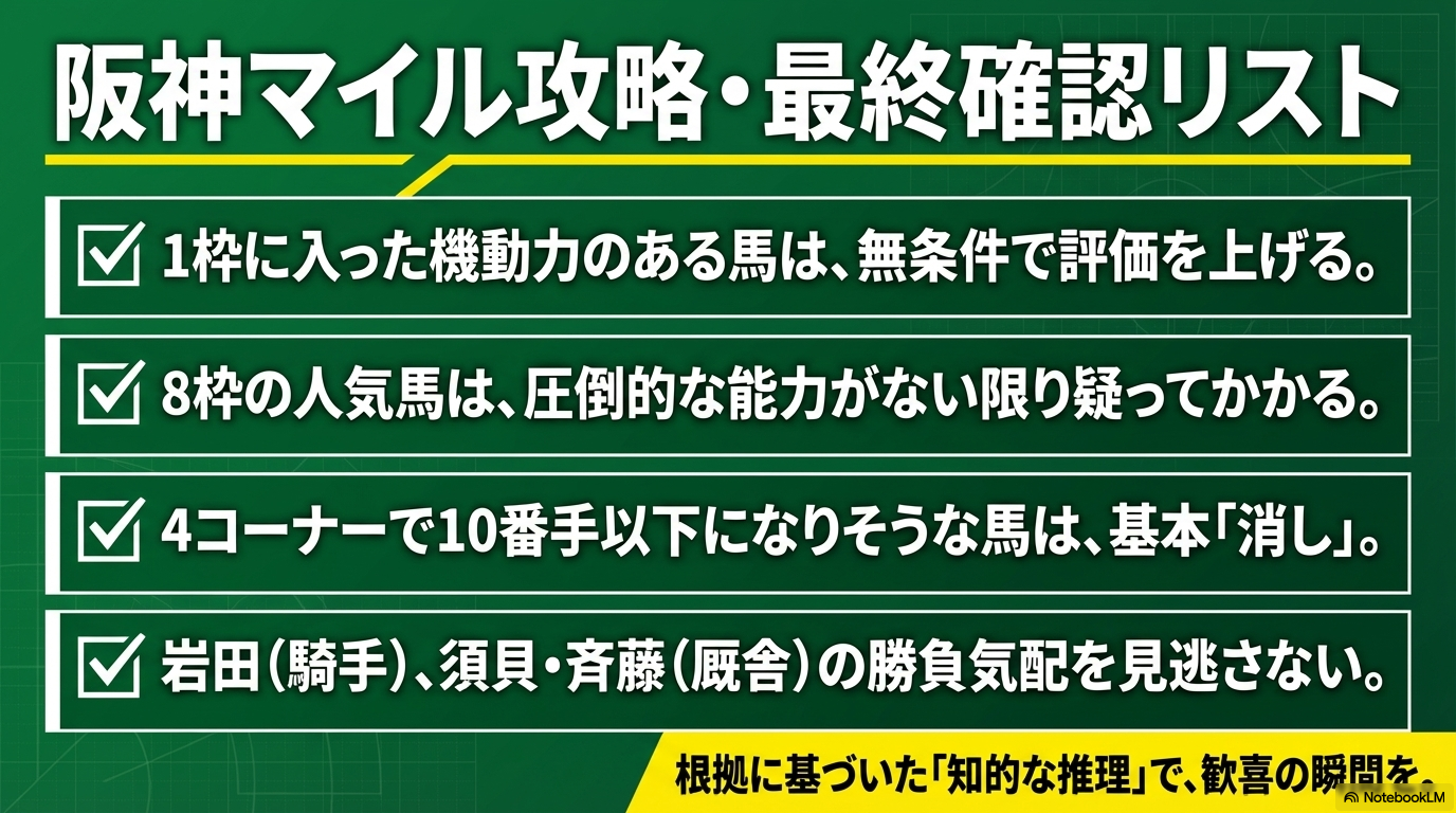 阪神芝1600m攻略の黄金律:最終チェックリスト