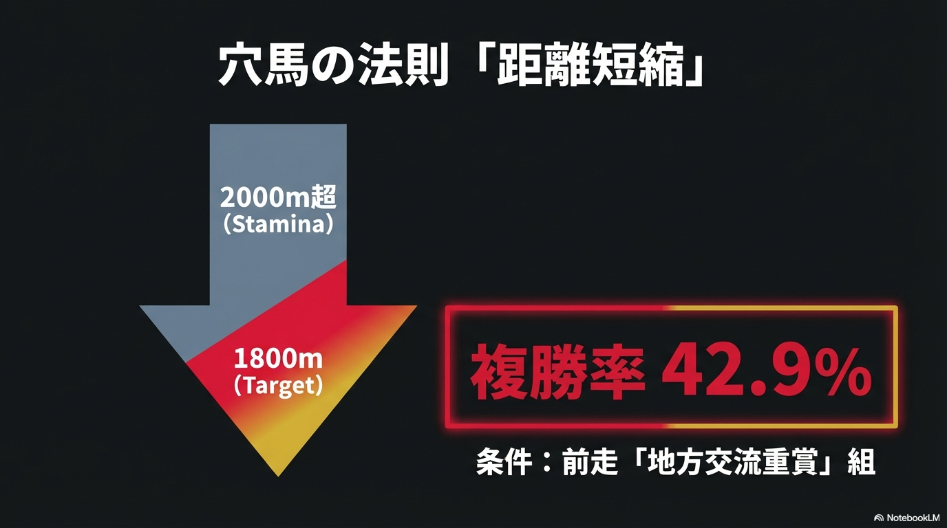 - アンタレスステークスや地方重賞組が狙い目となる、スタミナのアドバンテージを活かした距離短縮パターン