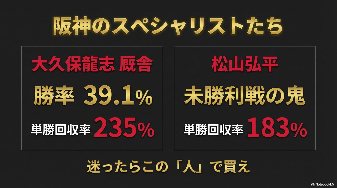 - 松山弘平騎手や川田将雅騎手など、阪神の急坂を攻略するために不可欠な騎手と厩舎の相性