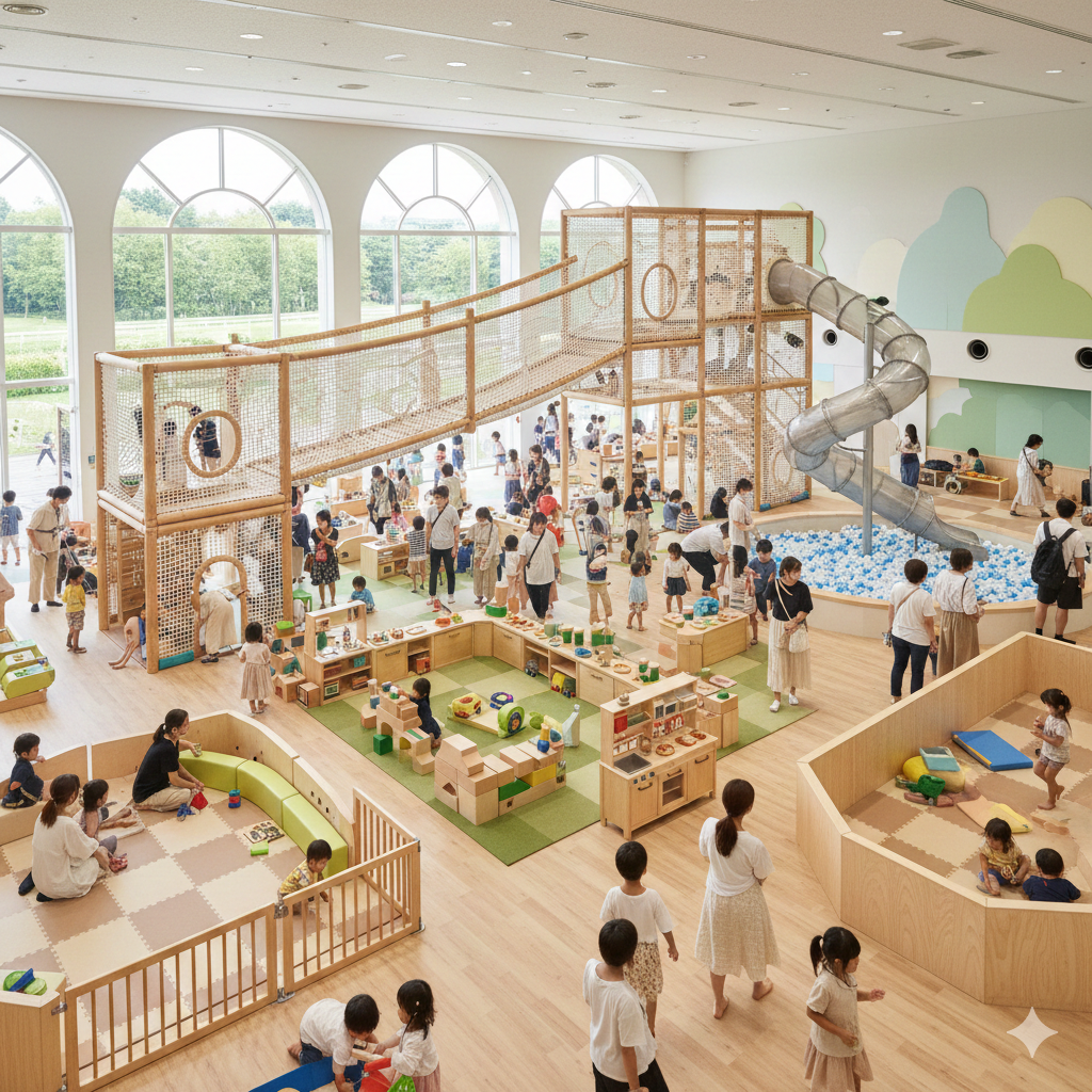 - アクティブエリア(3歳頃〜): 全身を使って遊べる動的なゾーン。回転遊具や築山があり、エネルギーを発散できます。