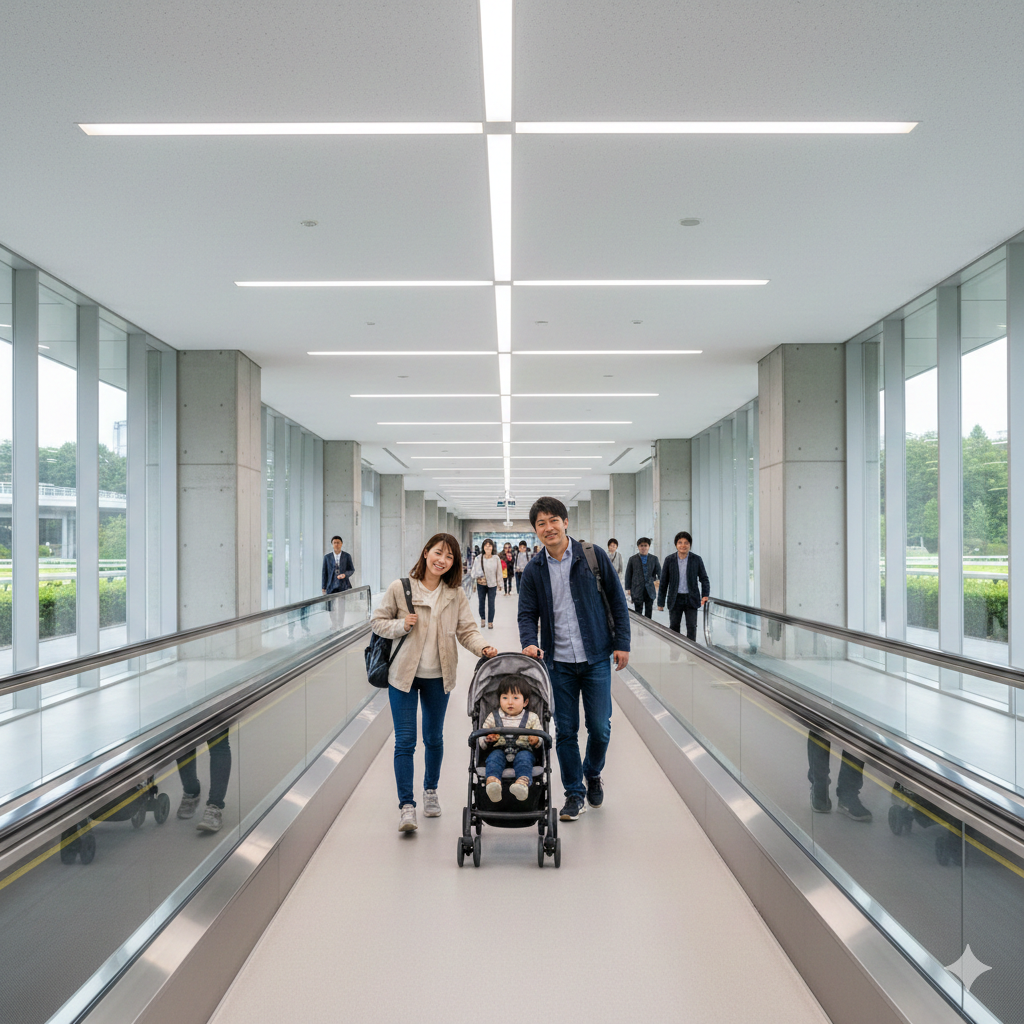 - 動く歩道: 帰り道は動く歩道が稼働していることが多く、遊び疲れた子供を抱っこしていても楽に移動できます。
