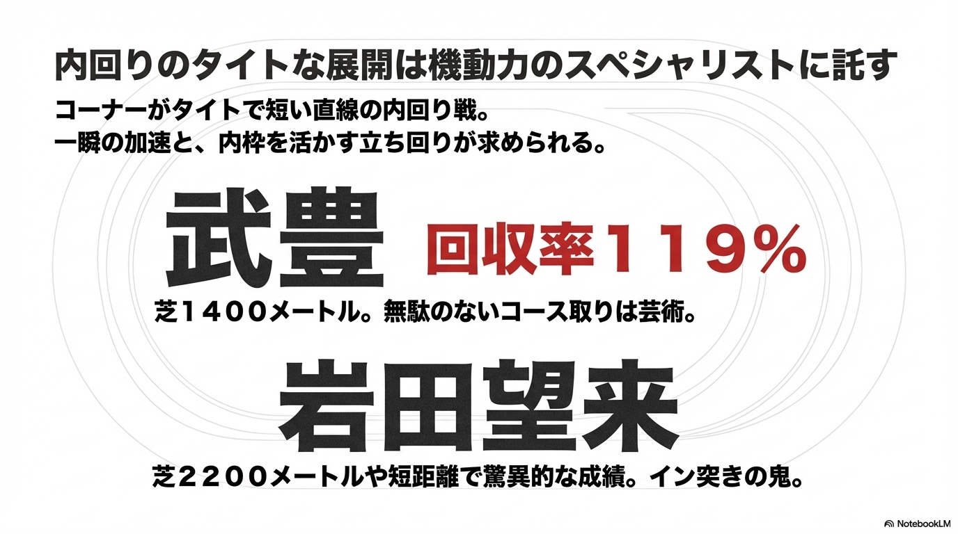 | 芝・内回り | 1200m, 1400m, 2000m | 機動力・立ち回り | 極めて高い |