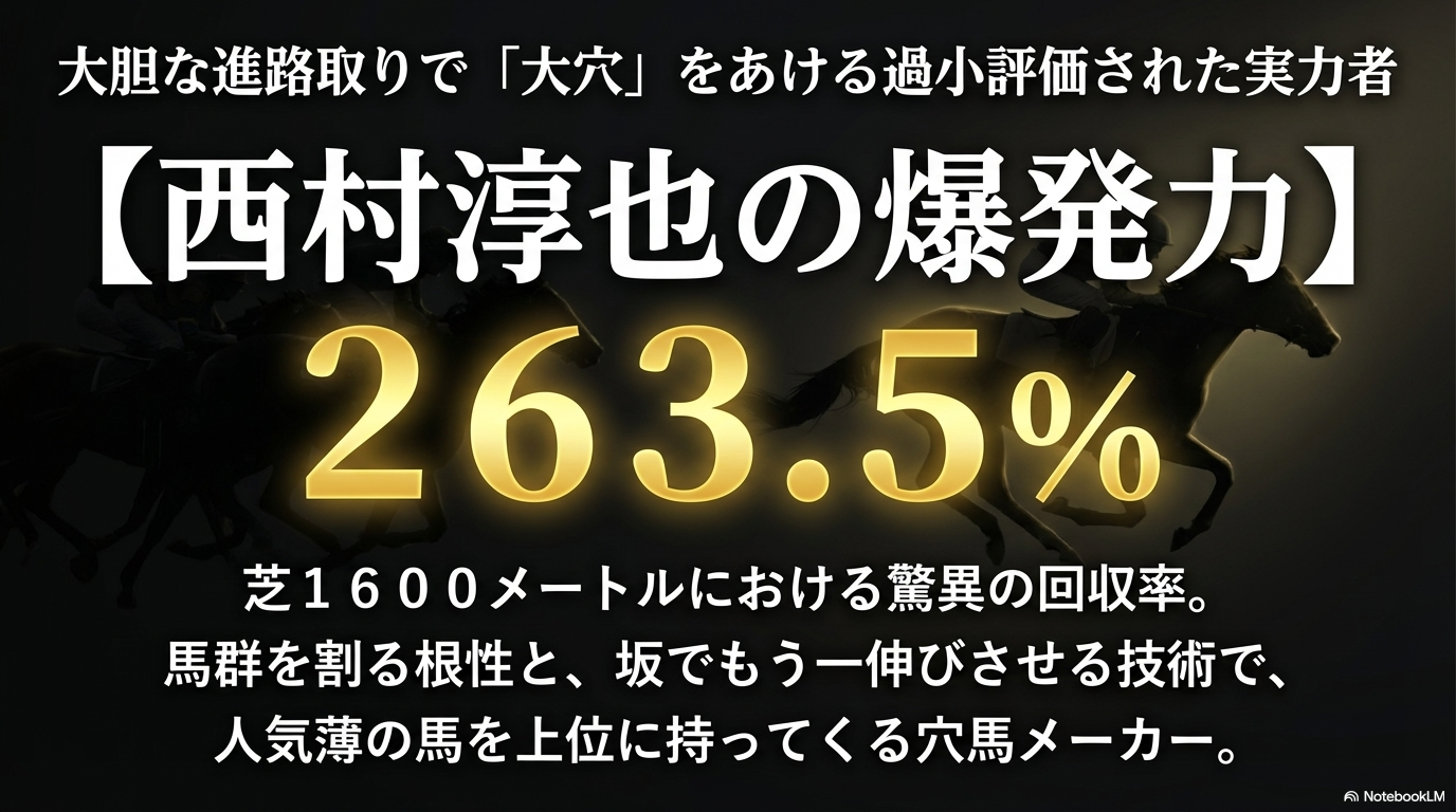 競馬で利益を出し続けるためには、勝率以上に「回収率」が重要であり、特定の条件——例えば、1200mの電撃戦なのか、あるいは主要G1が開催される1600mのタフなマイル戦なのか——によって、狙うべき騎手はガラリと変わってきます。