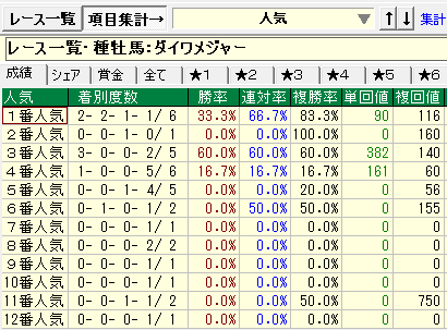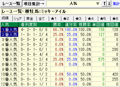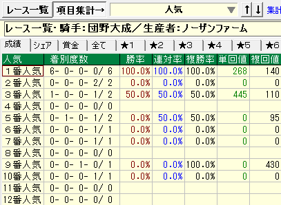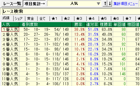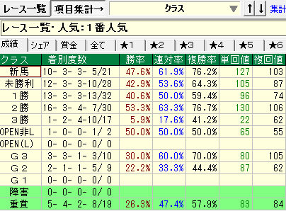 - 1番人気⇒新馬,2勝クラスの成績が優秀。