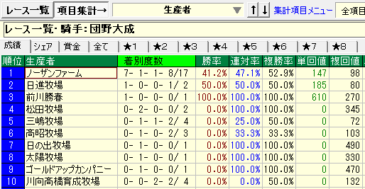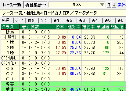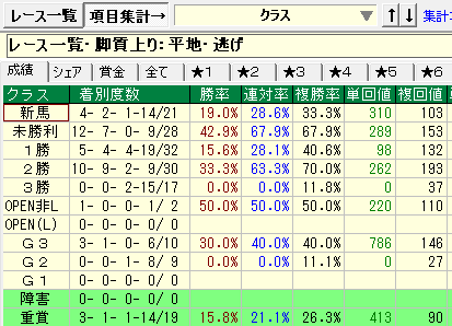 - 新馬,未勝利,1勝クラスの成績が優秀。