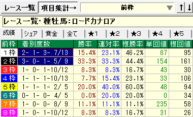 - ロードカナロア産駒⇒前走1,2枠で今回重賞