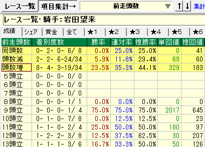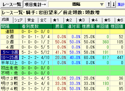- 岩田望来騎手⇒今回頭数増で間隔中5~25週で生月3月