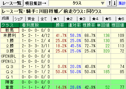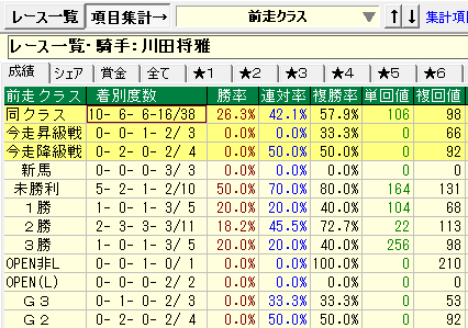 - 川田将雅騎手⇒①今回同クラス②今回未勝利クラス③牡馬