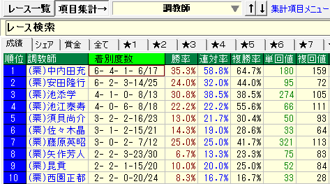 - 牝馬⇒斎藤崇、高橋亮厩舎の成績が優秀
