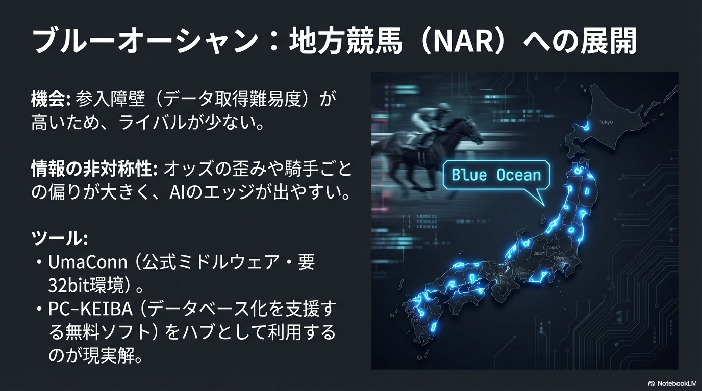 - 非構造化データの活用:馬体写真からの画像診断や、厩舎コメント・ニュース記事の自然言語処理(NLP)を行い、それを特徴量として取り込めるのはディープラーニングだけの特権です。