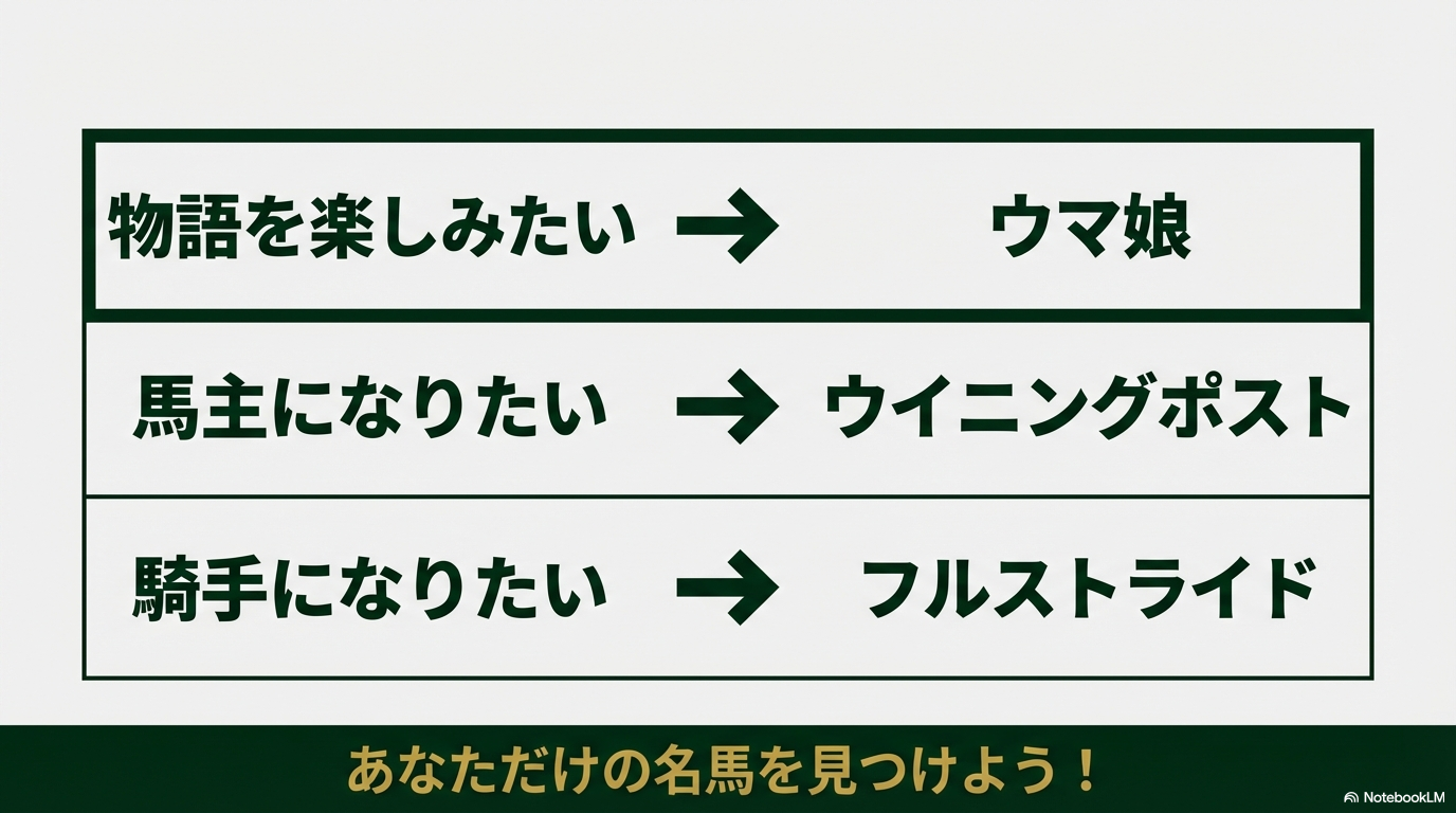 1. 【目的別】あなたにぴったりの競馬ゲーム最終チェック