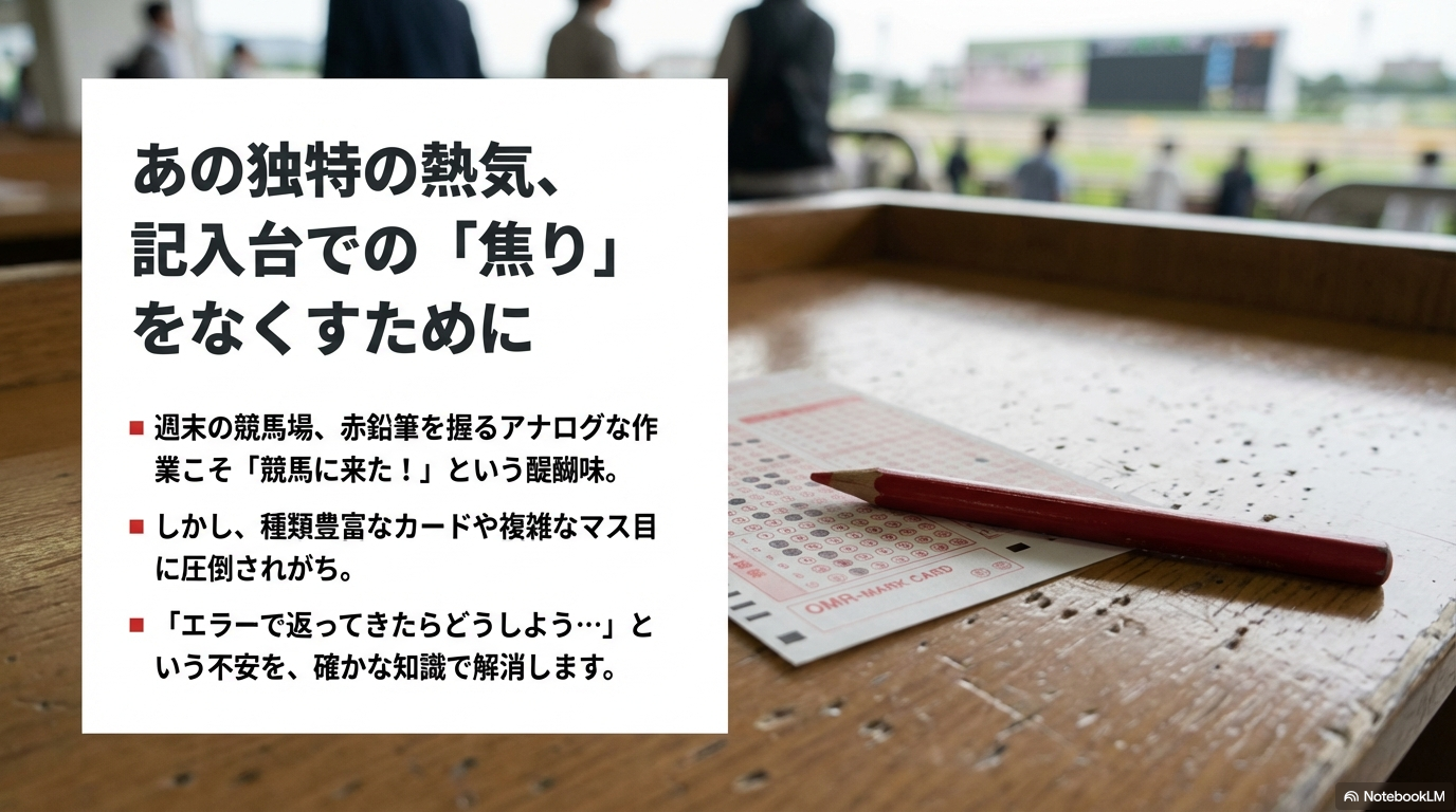そこで今回は、私が長年の競馬ファンとして実践しているスムーズな書き方のコツや、シチュエーションに応じたカードの使い分け、さらには意外と知られていない裏技的な活用法まで、初心者の方にも分かりやすく徹底的に解説していきます。これを読めば、もう券売機の前で慌てることはありませんよ。