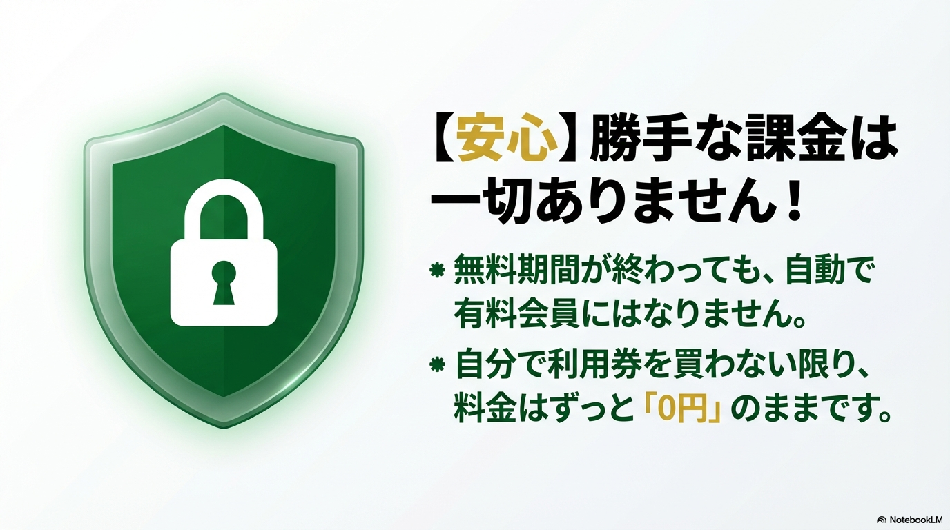 • 自動課金は一切なし!利用券を自分で買わない限り0円のまま