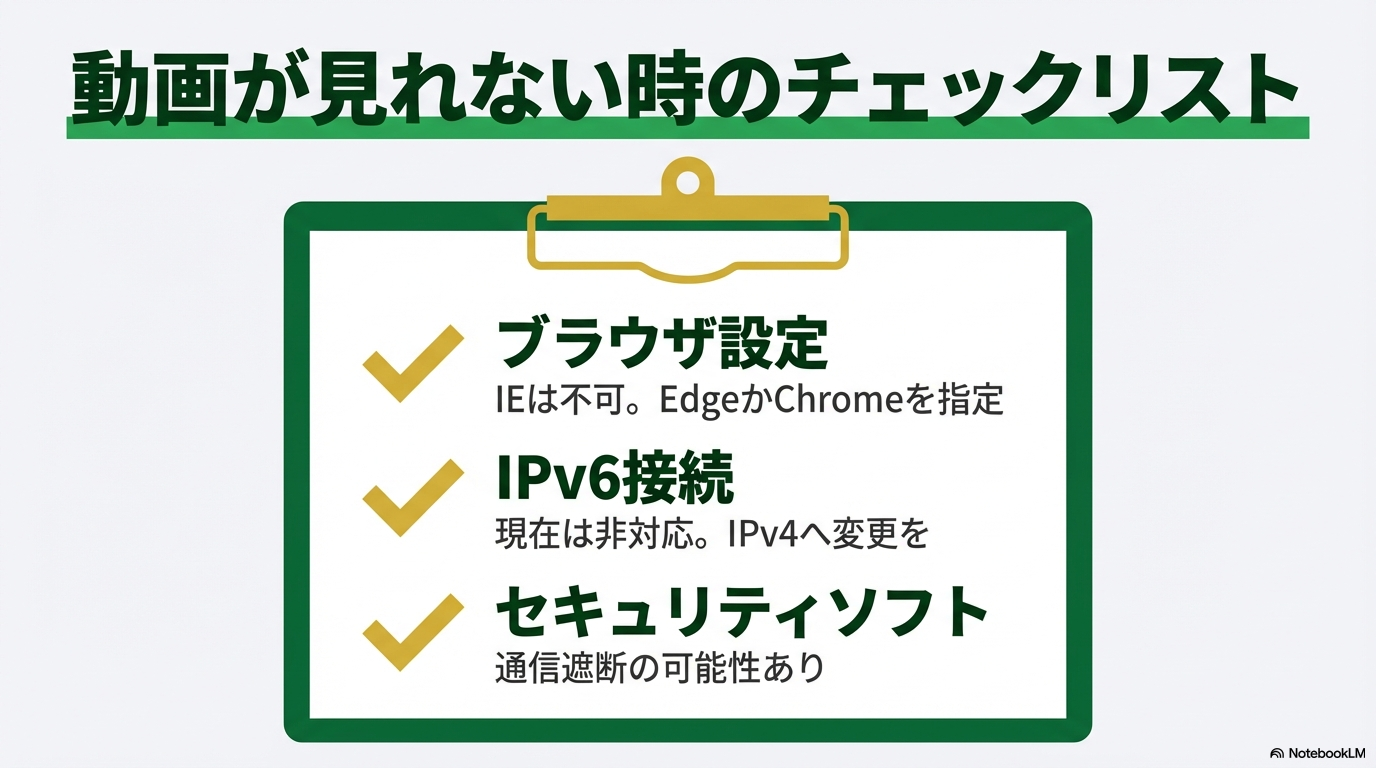 私がこれまでに競馬仲間から相談を受けたり、自分自身が新しいパソコンに買い替えた際に経験したりした中で、特に遭遇しやすかった原因とその具体的な対策を、エンジニア的な視点も交えながら詳しくまとめてみました。一つずつ順番に確認していけば、きっとスムーズに動画が見れるようになるはずですよ。