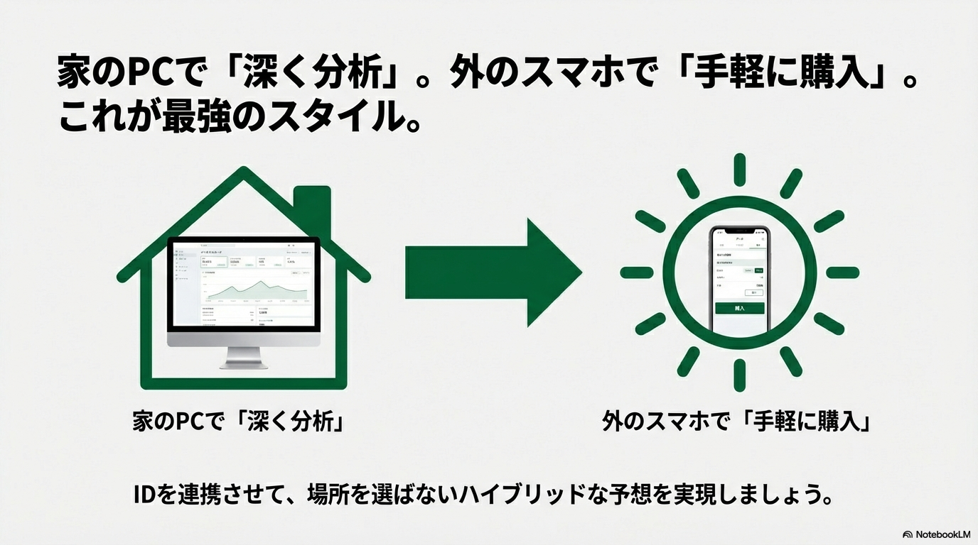 ここでは、このお得な連携の仕組みと、PCとスマホをハイブリッドに使いこなすための具体的な手順、そして意外と知られていない「UMACA(ウマカ)」との連携機能までを徹底的に深掘りします。