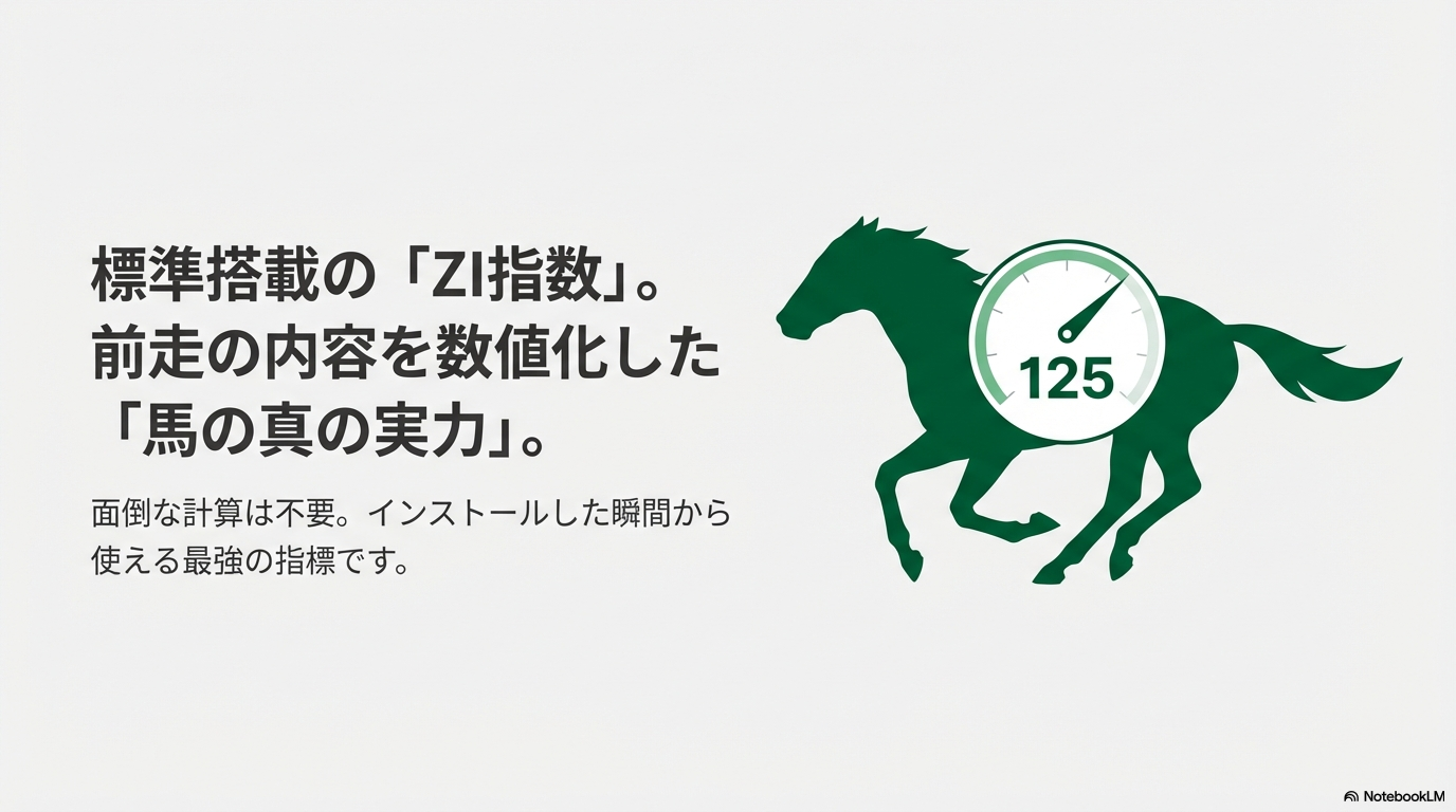 競馬で長期的に勝つための鉄則は、「みんなが過小評価している馬(実力の割にオッズが美味しい馬)」を見つけることです。ZI指数はオッズ(人気)を加味せず、純粋に前走の内容から能力を数値化しています。