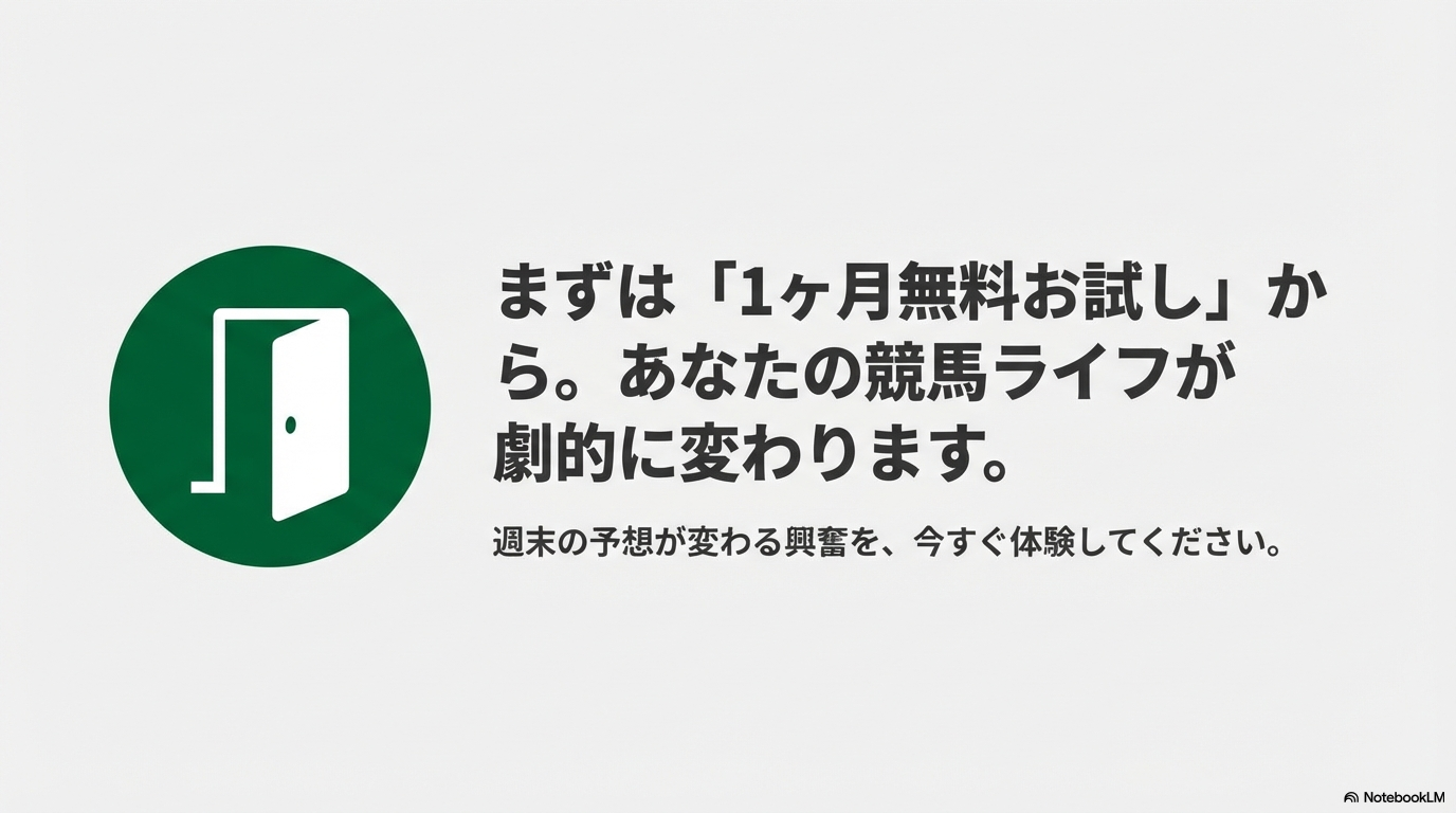 もしあなたが、「今の予想法に行き詰まりを感じている」「もう一歩、予想のレベルを上げたい」と本気で思っているなら、最初の1ヶ月だけでも試してみる価値は十分にあります。最初は機能の多さに圧倒されるかもしれませんが、その「使いにくさ」の向こう側には、これまで見えていなかった競馬の新しい景色が広がっているはずですよ。