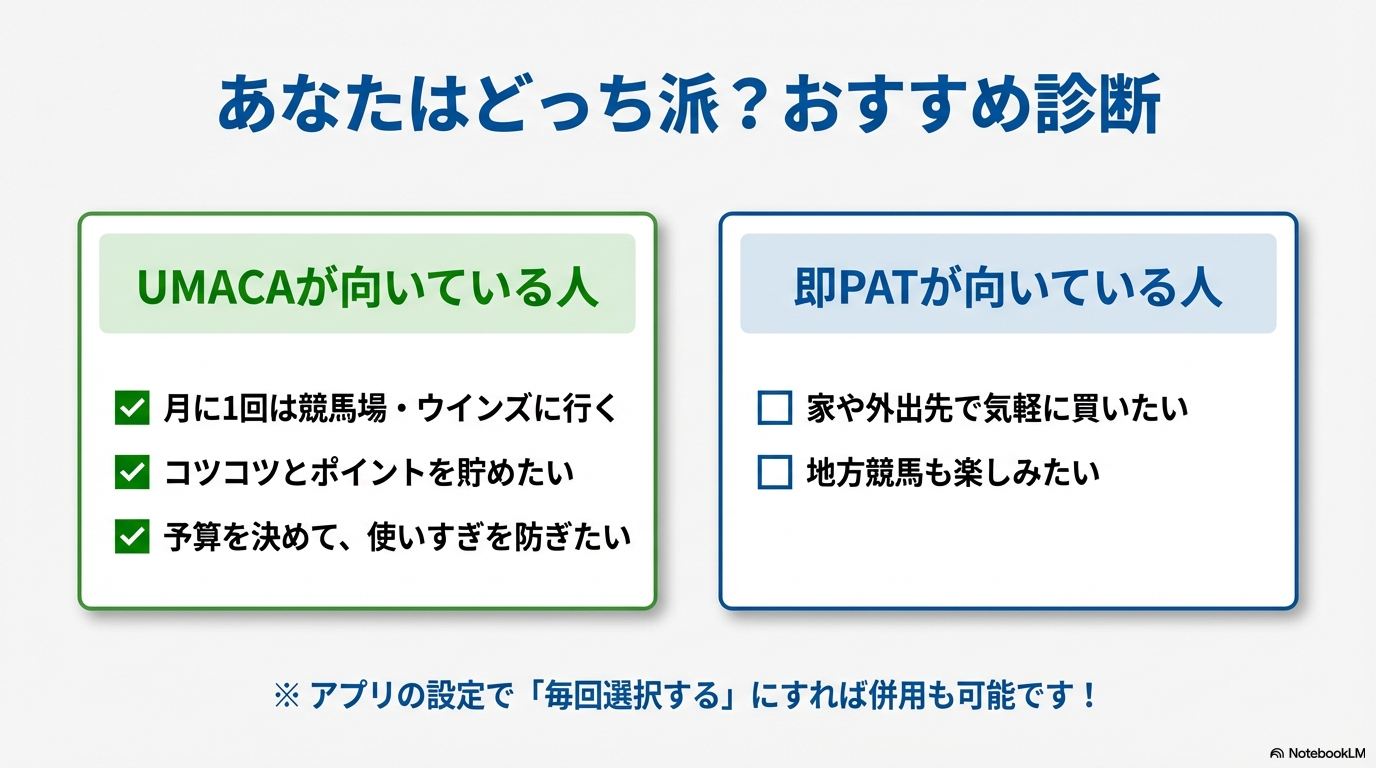 - 即PATとの決定的な違いと競馬場での賢い使い分けの基準