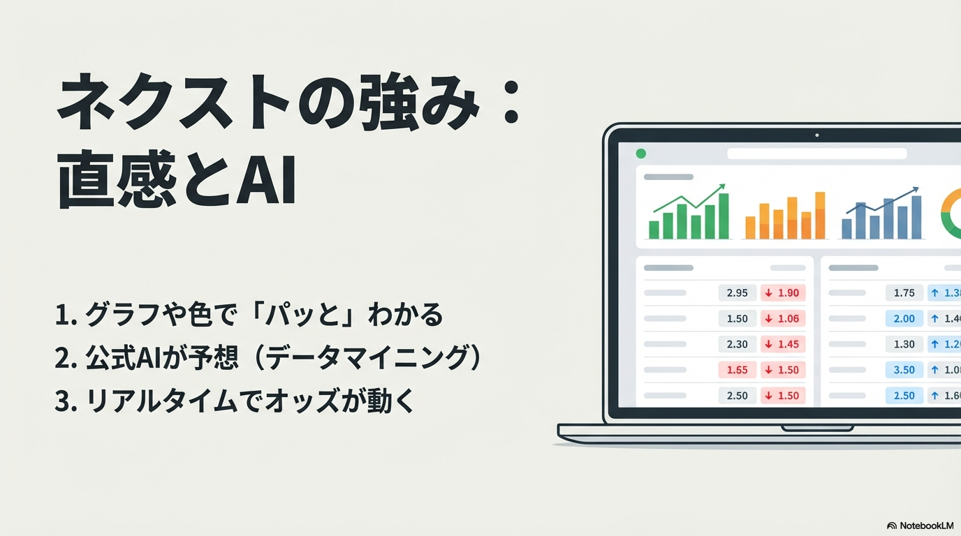 この「直感的なわかりやすさ」こそが、長時間予想していても疲れないNEXTの最大の武器であり、新聞からデジタルへ移行する最初の一歩として最適である理由です。