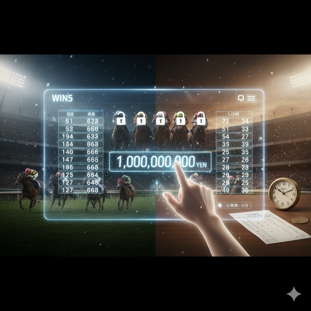 前述の通り、3連単をはじめとする通常の馬券における払戻金の上限は6,000万円ですが、そのルールには一つだけ、スケールの大きな例外が存在します。それが、JRAが指定する5つのレースの1着馬をすべて的中させるコンピュータ投票専用馬券「WIN5」です。この馬券は、単なる高配当狙いというだけでなく、複数のレースを連続して読み解く知識と運が試される、まさに競馬の集大成とも言える投票方式と言えるでしょう。