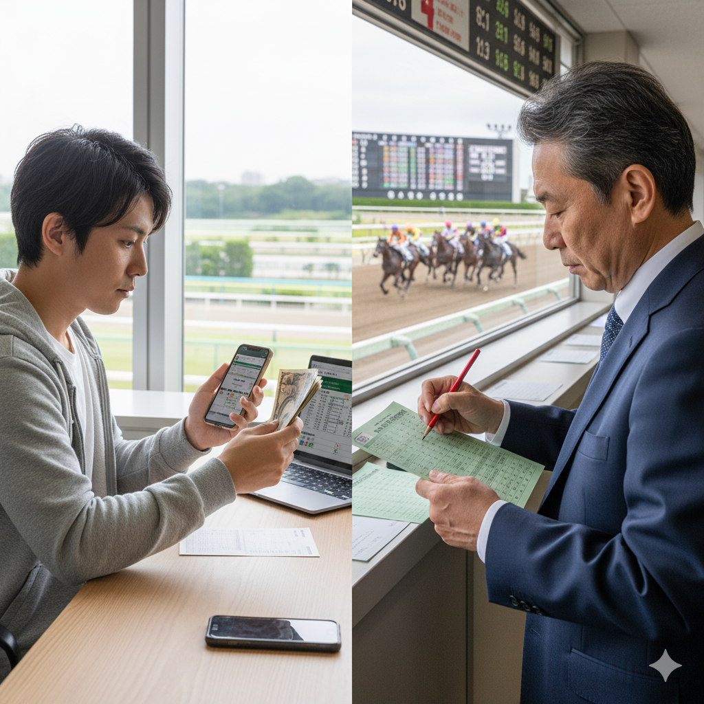 前述の通り、払戻金には法律で定められた明確な上限が存在する一方で、馬券を「いくらまで買えるか」という掛け金の上限は、購入方法によってそのルールが大きく異なります。デジタル化が進んだ現代の競馬では、主に「インターネット投票」と「現金での窓口購入」の2つの方法があり、それぞれにメリットとデメリットが存在します。ご自身の観戦スタイルや予算、そして何を重視するかによって最適な購入方法は変わってくるでしょう。