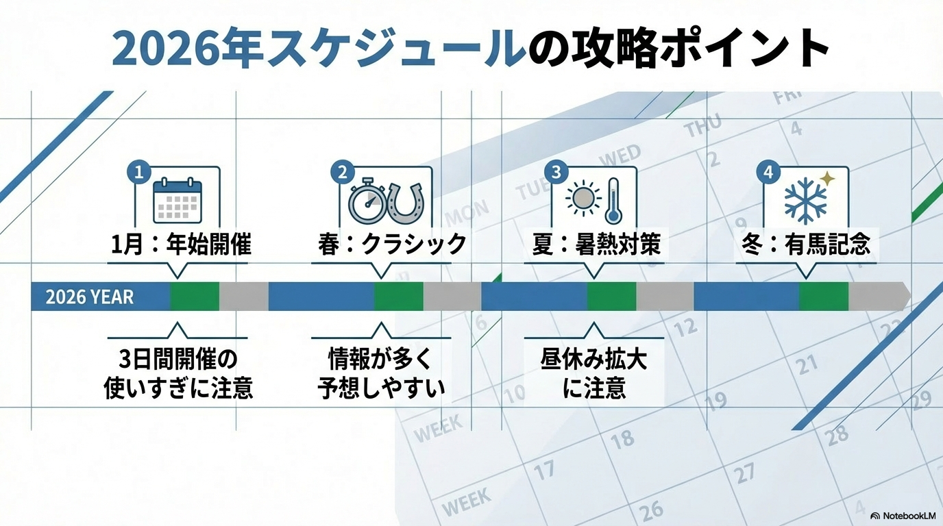 - 2026年の最新スケジュールに基づいた勝ちやすいレースの条件と選び方