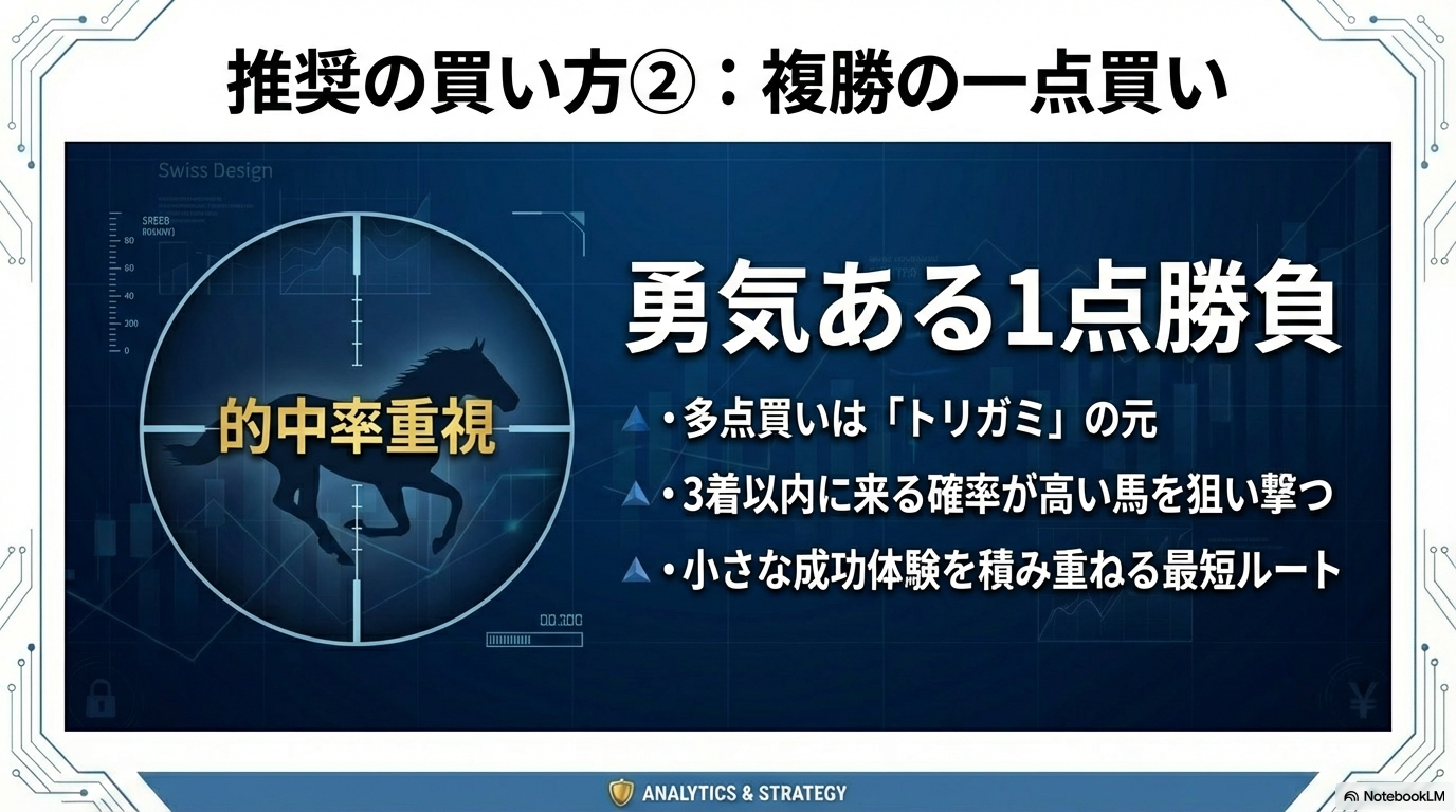 「ワイドボックス」でトリプル的中を狙うか、「複勝1点買い」でコツコツ成功体験を積みます。一発逆転の3連単は、基礎が固まるまで封印しましょう。 - データとツールの活用:
