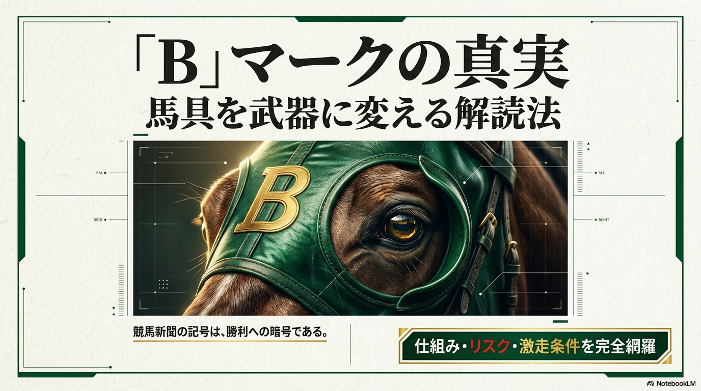 こんにちは。YUKINOSUKEです。みなさんは競馬新聞の馬柱にある「B」のマークを見て、具体的にどのような効果があるのか気になったことはありませんか。実は私自身も、競馬を始めたばかりの頃はメンコとの違いすらよく分かっていませんでした。しかし、このブリンカーの効果や意味を正しく理解し、逆効果になるパターンまで把握できるようになると、今まで見逃していた激走馬が見つかるようになります。今回はブリンカーの基本的な仕組みから、私が実際に馬券で狙っている初ブリンカーの激走条件まで、分かりやすく解説していきます。