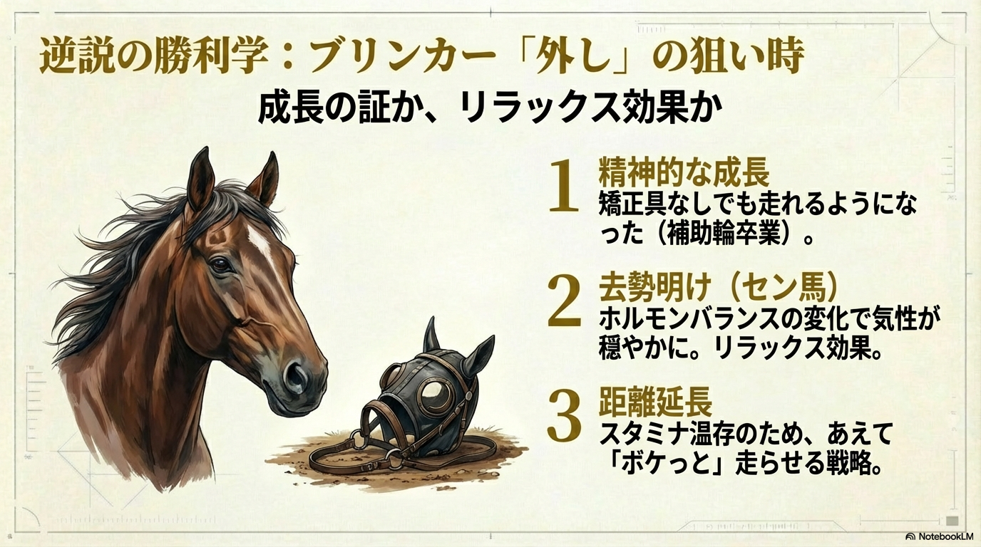 - 脱ブリンカーの逆説: あえて外してきた時の陣営の意図と、好走する条件。